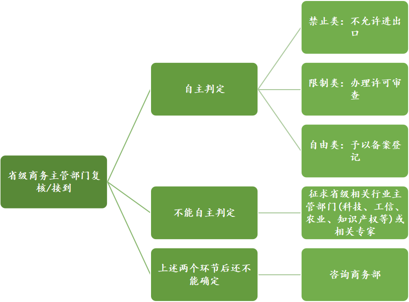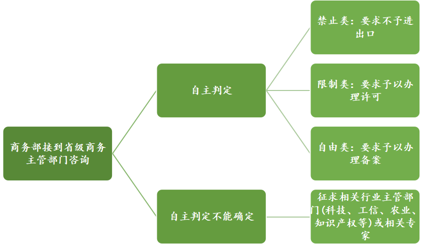 我国对禁止进出口和限制进出口的技术实行目录式管理,由商务部会同科技部等有关部门制定、调整并公布禁止或者限制进出口的技术目录,目录中未规定的技术通常可理解为自由进出口类技术。如医药企业无法准确判断相关交易涉及的技术是否为自由进出口类技术,可以依据《指引》中禁止类与限制类技术甄别过程的流程图进行甄别。