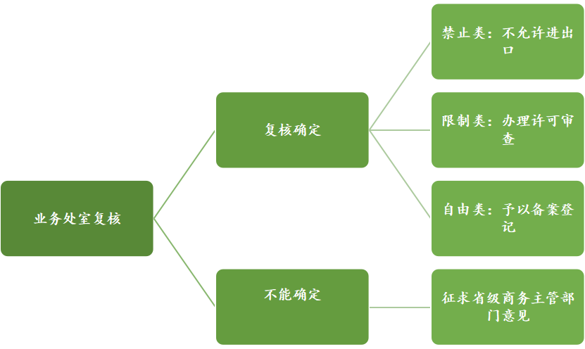 步骤一:企业自行甄别步骤二:负责备案登记的商务主管部门业务处室甄别步骤三:省级商务主管部门甄别步骤四:商务部甄别(4)临时管制