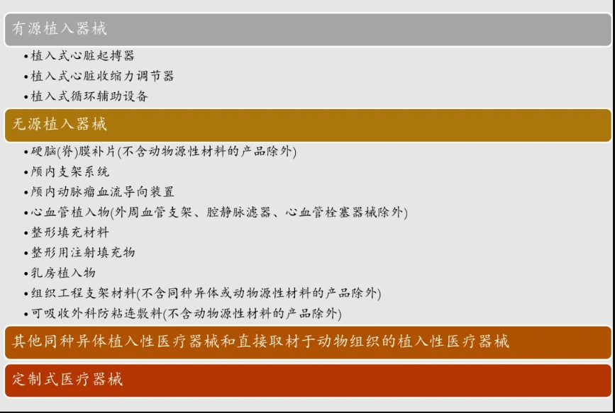 部分植入性医疗器械因具有高风险性,因此不得委托生产,根据《禁止委托生产医疗器械目录》的规定,有三大类医疗器械禁止委托生产,一是有源植入器械,二是无源植入器械,三是其他同种异体植入性医疗器械和直接取材于动物组织的植入性医疗器械。此外,定制式医疗器械也不得委托生产[9]。
